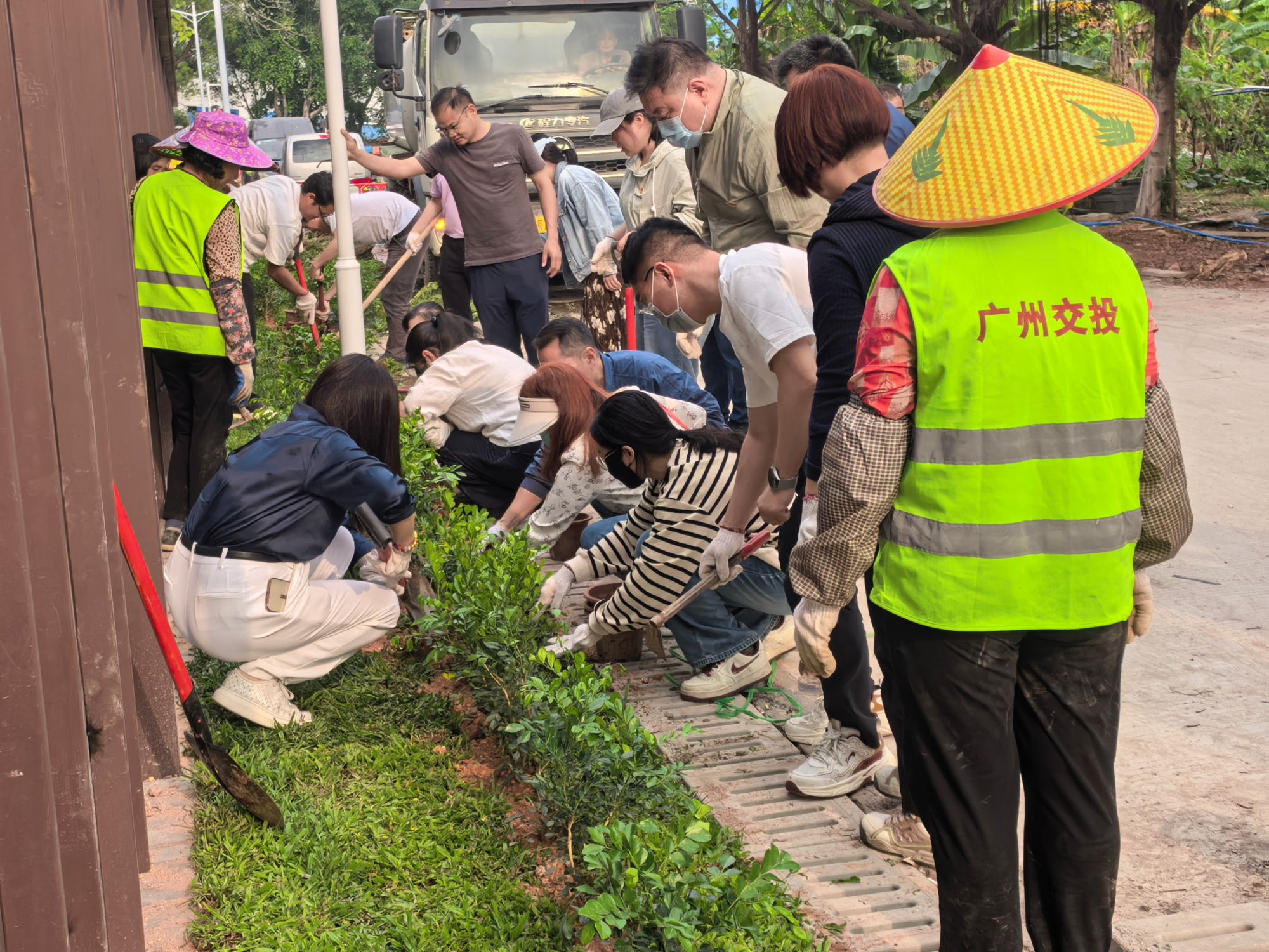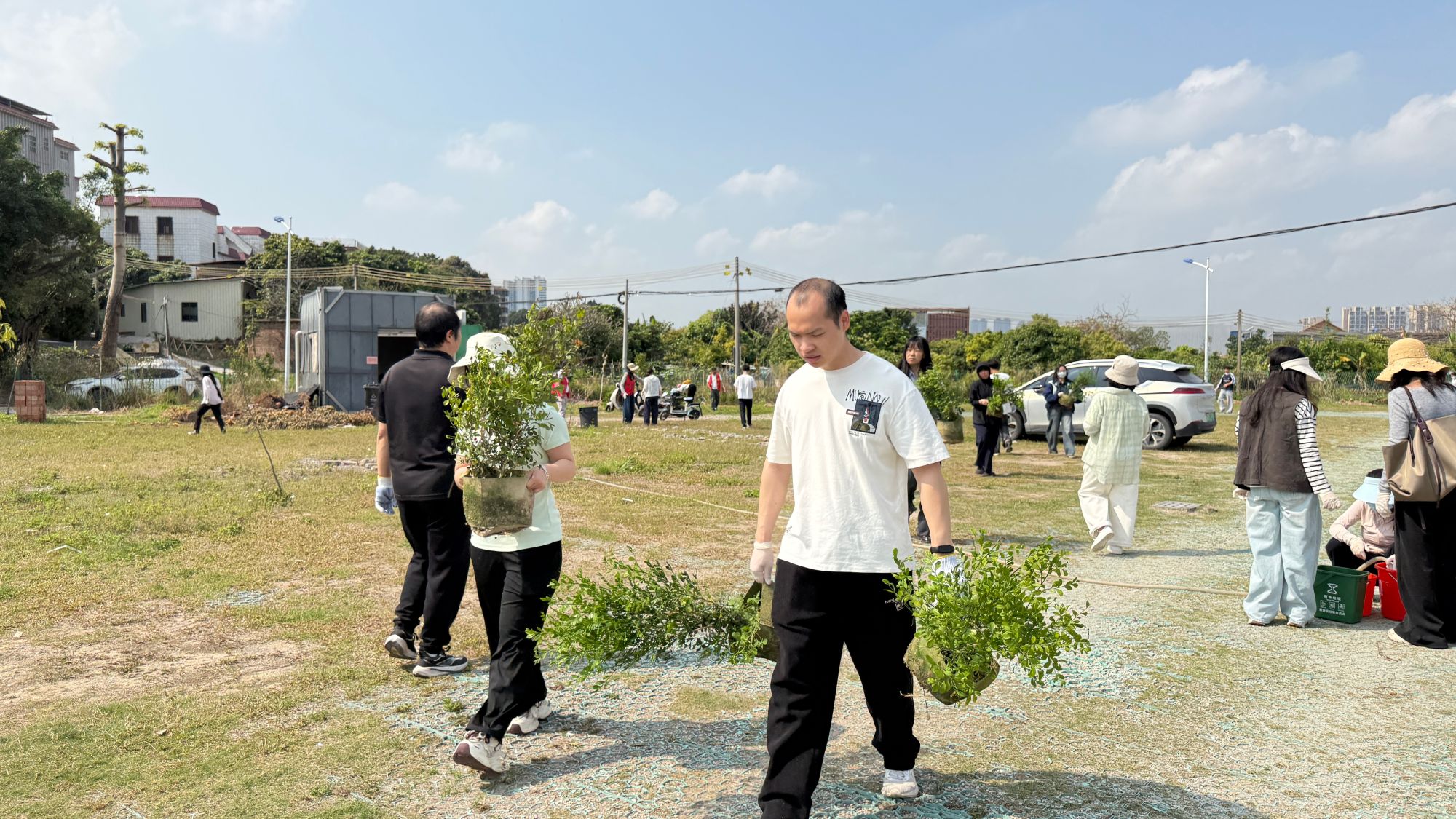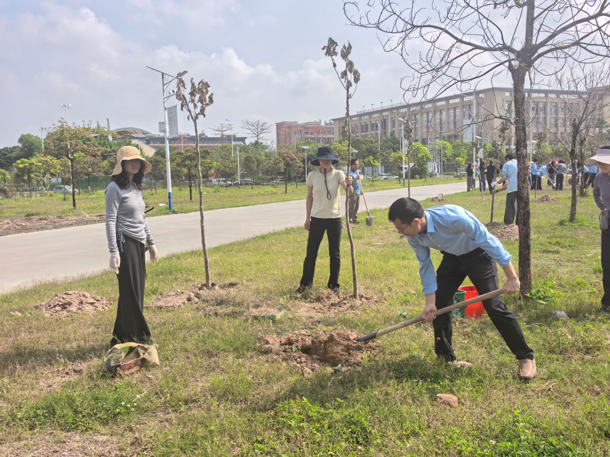 植树现场一片热火朝天,大家自发结组、分工协作,扶苗定根、挥锹铲土、培土压实、提水浇灌,在村道旁种下九里香、火焰木、菠萝蜜等岭南乡土苗木。两批次的辛勤劳作后,百余株苗木迎风挺立,为秀发村、思贤村勾勒出清新靓丽的生态风景线,让乡村景致更显生机。