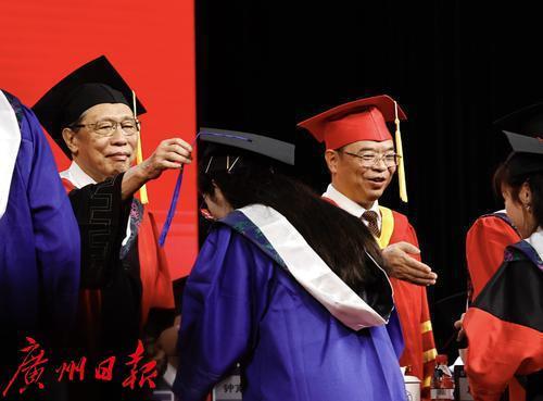 6月28日上午,广州医科大学2024年毕业典礼暨学位授予仪式在番禺校区举行,3449名学生顺利毕业,开启人生新征程。 毕业典礼前钟南山院士与毕业生合影。典礼现场中,2024届毕业生带来了精彩动人的快闪表演。毕业生代表、教师代表、校友代表先后发言。“共和国勋章”获得者、中国工程院院士钟南山,广州医科大学校长赵醒村教授为毕业生寄语。典礼由广州医科大学党委书记唐小平主持。
