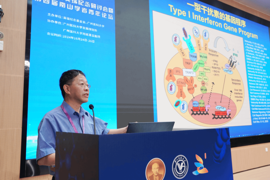 王晓东院士作主旨报告。(来源:广州医科大学)