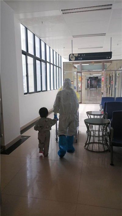 医护人员给予两岁八个月的宝宝细致周到的照顾,宝宝也对他们产生了信任和依赖,这样的故事在市八医院隔离病区还有许多