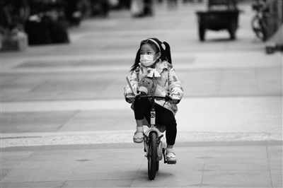 在小区里骑车,口罩也要戴好。广州日报全媒体记者杨耀烨摄