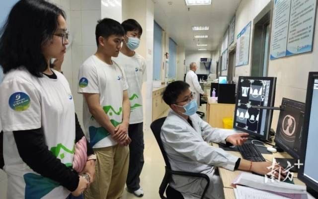 依托广州医科大学呼吸学科连续14年全国排名第一的专业优势和钟南山呼吸疾病防控创新团队的科研实力,围绕科普宣教、医疗实践两大板块开展社会实践活动,并聚焦于慢阻肺的复查和宣传工作。到达广东清远连山后,实践团成员们来到连山人民医院,对上一年进行慢阻肺筛查的患者进行电话回访。同时,为了能够提升群众对于慢阻肺的认知,实践团成员在医院内科进行探访,给予患者关心和温暖,对患者及患者家属发放慢阻肺宣传册进行科普,并教导呼吸操和健康操。