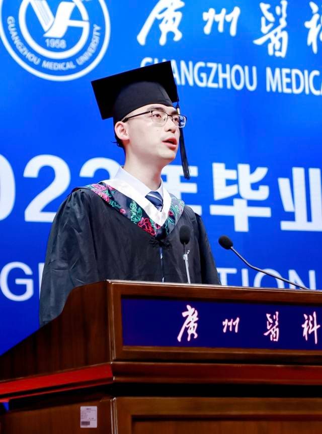 彭浩欣作为优秀毕业生代表在广州医科大学2023年本科毕业典礼上发言。