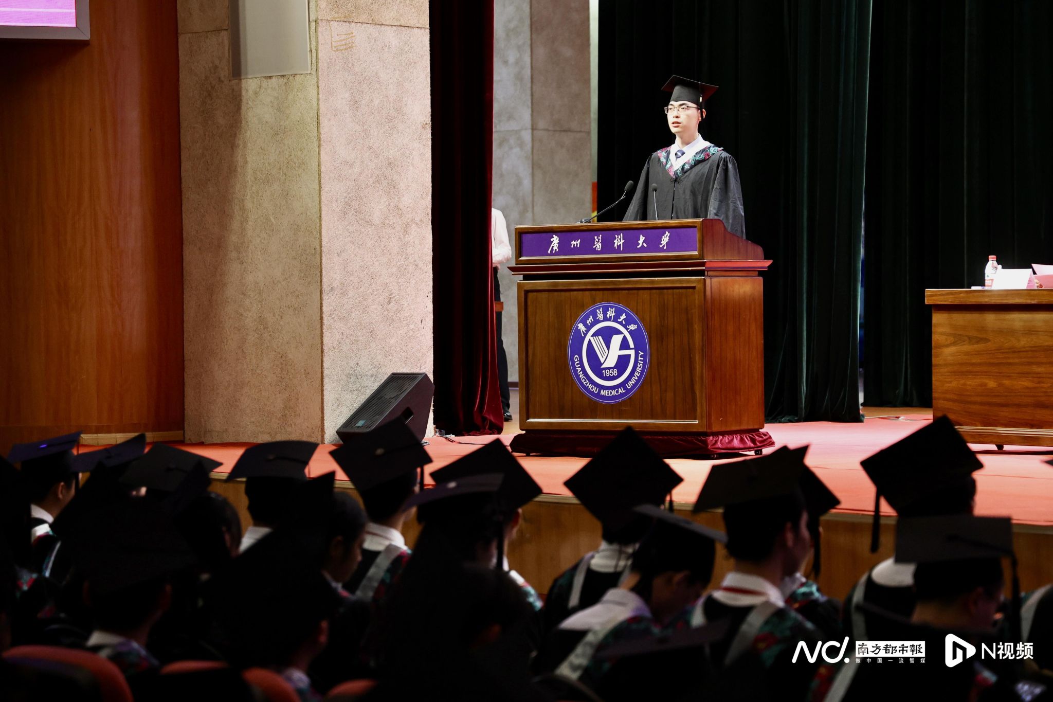 “入学之初,钟院士寄语我们,要成为有梦想、有追求、有激情的广医人。谆谆教导犹如精神灯塔,南山精神激励我们踔厉远航。”本科毕业生代表、2018级临床医学专业南山班的彭浩欣表示,感谢学校提供一流的师资和优美的学习环境,感谢老师们一如既往耐心指导与深切关爱。