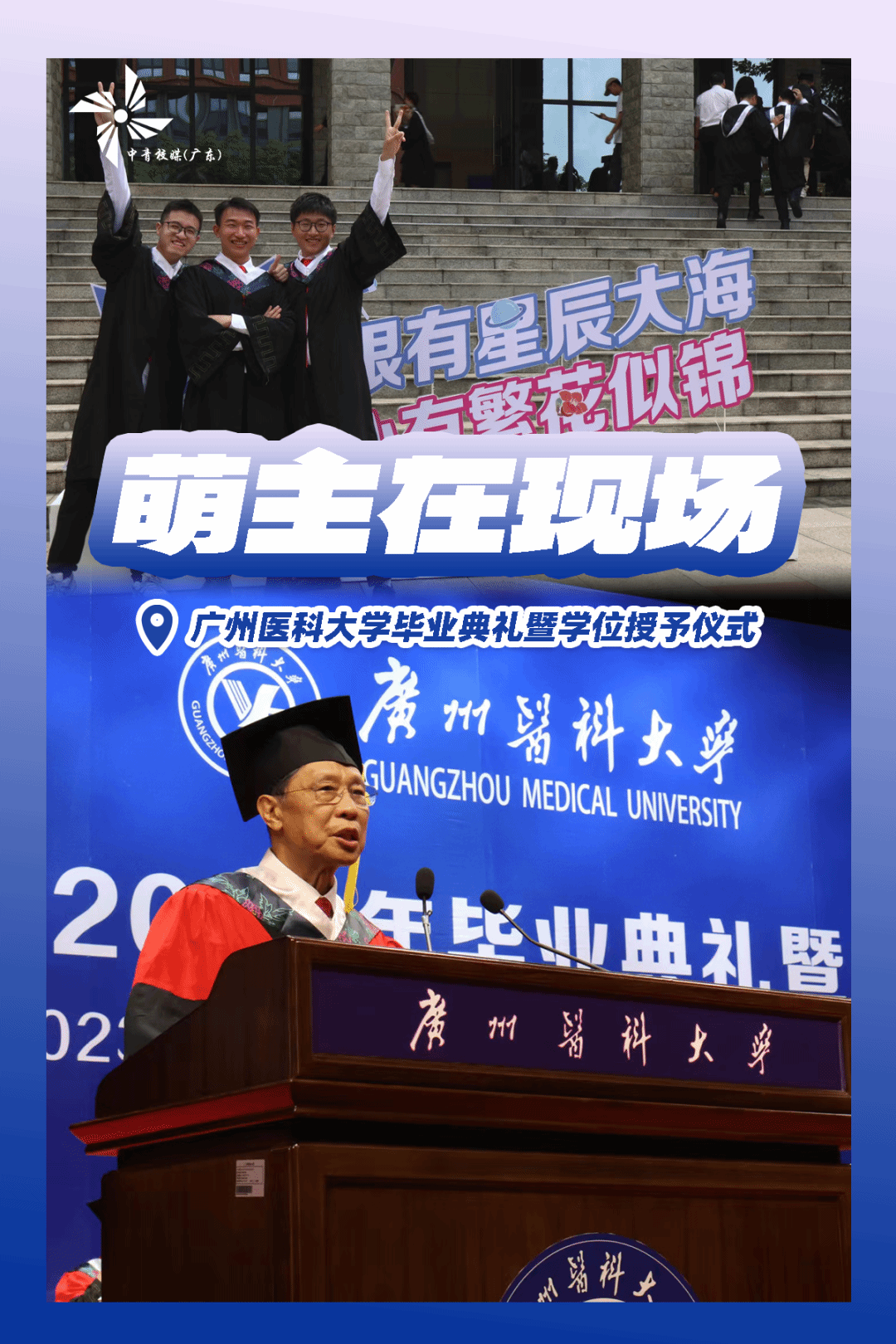 钟南山院士以亲身经历讲述60余年的从业事迹,寄语广医毕业生:“不但要有理想,更要有梦想;不但要对自己有要求,而且要有追求;不但要有志气,而且要争气;不但要有热情,一定要有激情。”