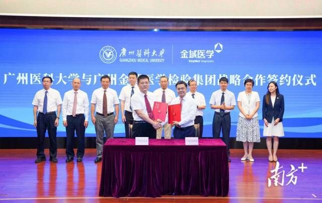 广州医科大学与广州金域医学检验集团战略合作签约仪式现场。