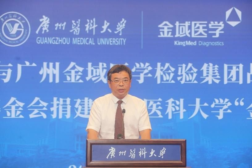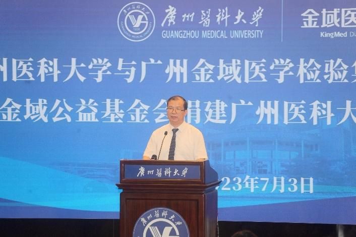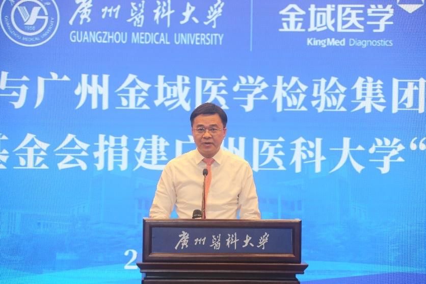 广州金域医学集团梁耀铭董事长在致辞中表示,金域医学全力支持广医“双一流”建设,支持科技创新和教育发展。他希望,“金域楼”建成后,能成为医检创新人才培养的摇篮,也成为医检产学研深度融合的重要平台,为广州、广东乃至全国培养出更多高水平的医检人才,为大湾区乃至全国的生物医药与健康产业贡献更多的人才力量。