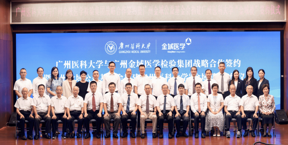 为支持广州医科大学(以下简称“广医”)“双一流”建设,推进“新医科”专业建设与布局,广州金域医学检验集团(以下简称“金域医学”)向广医捐资1亿元人民币,用于建设“金域楼”以及推动教学科研工作,助力高水平医检人才培养和产学研融合发展。7月3日,双方战略合作签署暨“金域楼”捐建签约仪式在广医番禺校区举行。