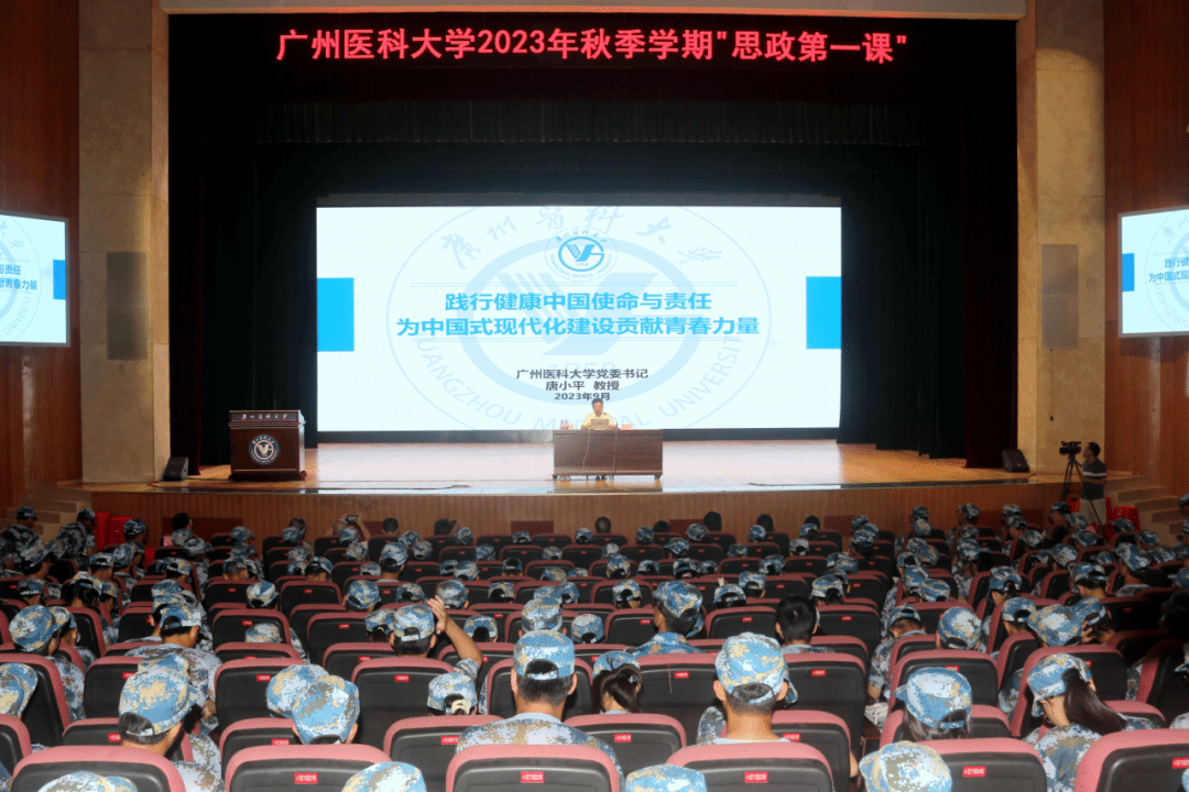 9月20日,广州医科大学党委书记唐小平教授为2023级的新生讲授思政第一课,他以“践行健康中国使命与责任 为中国式现代化建设贡献青春力量”为题,阐释了中国式现代化与健康中国建设的重要联系,介绍了健康中国建设中的广医担当,并勉励同学们肩负青春责任,在中国式现代化建设和健康中国建设中绽放绚丽的青春之花。