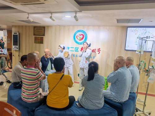 放疗科二区同时开展“快乐音乐进病区”音乐治疗舒缓活动。活动在《布谷鸟》轻松愉悦的歌声中拉开序幕,护士带领患者进行以音乐鼓点引导功能锻炼,共同合唱歌曲《朋友》等。医患共聚一堂,以音乐为媒介,舒缓身心及情绪,促进表达与交流,提前共度一个温馨佳节。