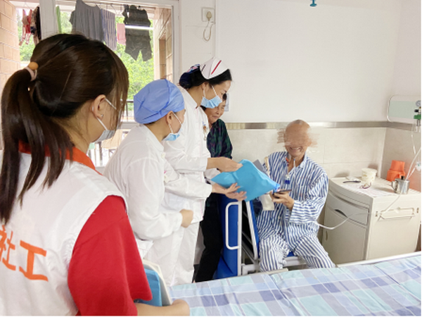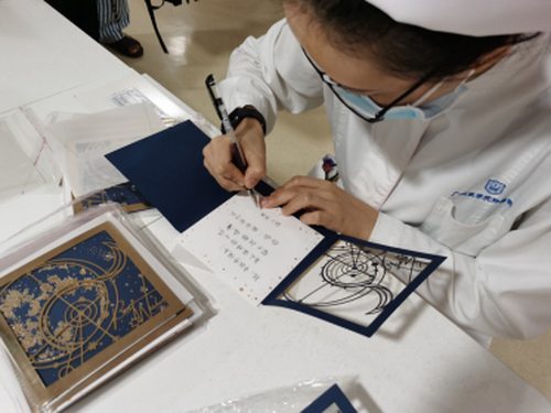 为了让住院病人感受到节日的氛围以及大家庭的温暖,医院团委组织医务志愿者联合大病救助站医务社工来到肝胆外科、放疗科等病区开展了“情暖中秋,医患相伴”病房探访,同时展开音乐治疗舒缓活动,为患者们送上节日祝愿与问候。护士们更是送上亲手书写的节日贺卡,随同节日礼包一并送到了患者手中。