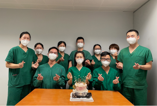 护理部为在中秋生日的医疗队员夏燕、麦灿彬、龙树辉准备了暖心生日蛋糕