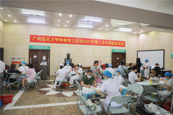 广医在线讯 近日,广医三院在住院部19楼开展2021年职工第二次无偿献血活动。此次献血活动共有313位职工积极参与,共捐献74200毫升血液,献血人数和献血量均达到广医三院历年之最。