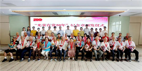仪式上,刘世明代表医院党委向获此殊荣的老党员表达了敬意和祝贺。他在讲话中表示,在庆祝中国共产党成立100周年的重要时刻,颁发“光荣在党50年”纪念章充分体现了党中央对老党员的高度重视和亲切关怀。医院将用心用力用情关爱关心老党员,希望广大老党员、老干部一如既往关心医院发展,共同推动医院建设。同时,他对全院在职党员提出殷切希望,广大党员职工要结合党史学习教育,赓续光荣传统,推动医院事业发展迈入新台阶,将来也为自己赢得一枚纪念章。