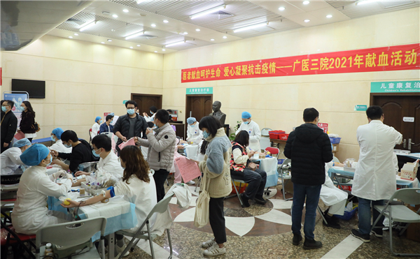 广医在线讯 新年伊始,广医三院组织“医者热血呵护生命,爱心凝聚抗击疫情”2021年职工献血活动,现场共计250名医护人员参与,累计献血58800ml,用热血汇成暖流,筑起人民群众生命健康的保障线。