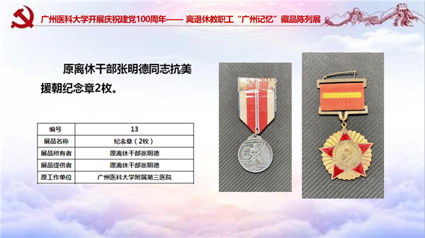 广医在线讯 为庆祝中国共产党成立100周年,激励广大离退休教职工不忘初心、牢记使命,以昂扬的精神和饱满的热情,迎接中国共产党建党100周年。5月24日上午,由学校离退休干部管理处主办、广医三院离退休人员管理科承办、广医各附属医院离退办协办的广州医科大学庆祝建党100周年—— 离退休教职工“广州记忆”藏品陈列展在该院的员工培训中心举办。