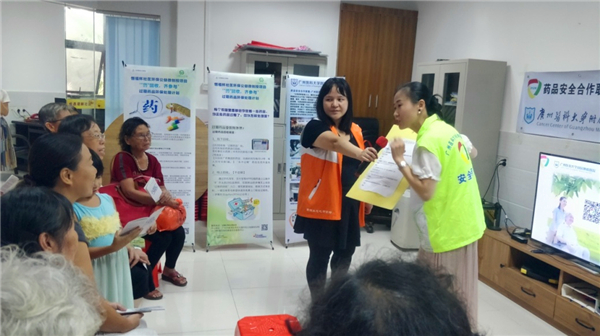 通过提问的形式,药师志愿者向大家普及药品的定义、分类、安全存储等基本知识。