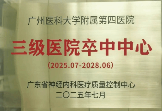 2024年7月,广医四院成为“国家高级卒中中心建设单位”;2025年6月30日,经专家组实地评审,中心管理、硬件设施、绿色通道建设及科普宣教等工作获高度认可,成功通过复审并获评“三级医院卒中中心”。