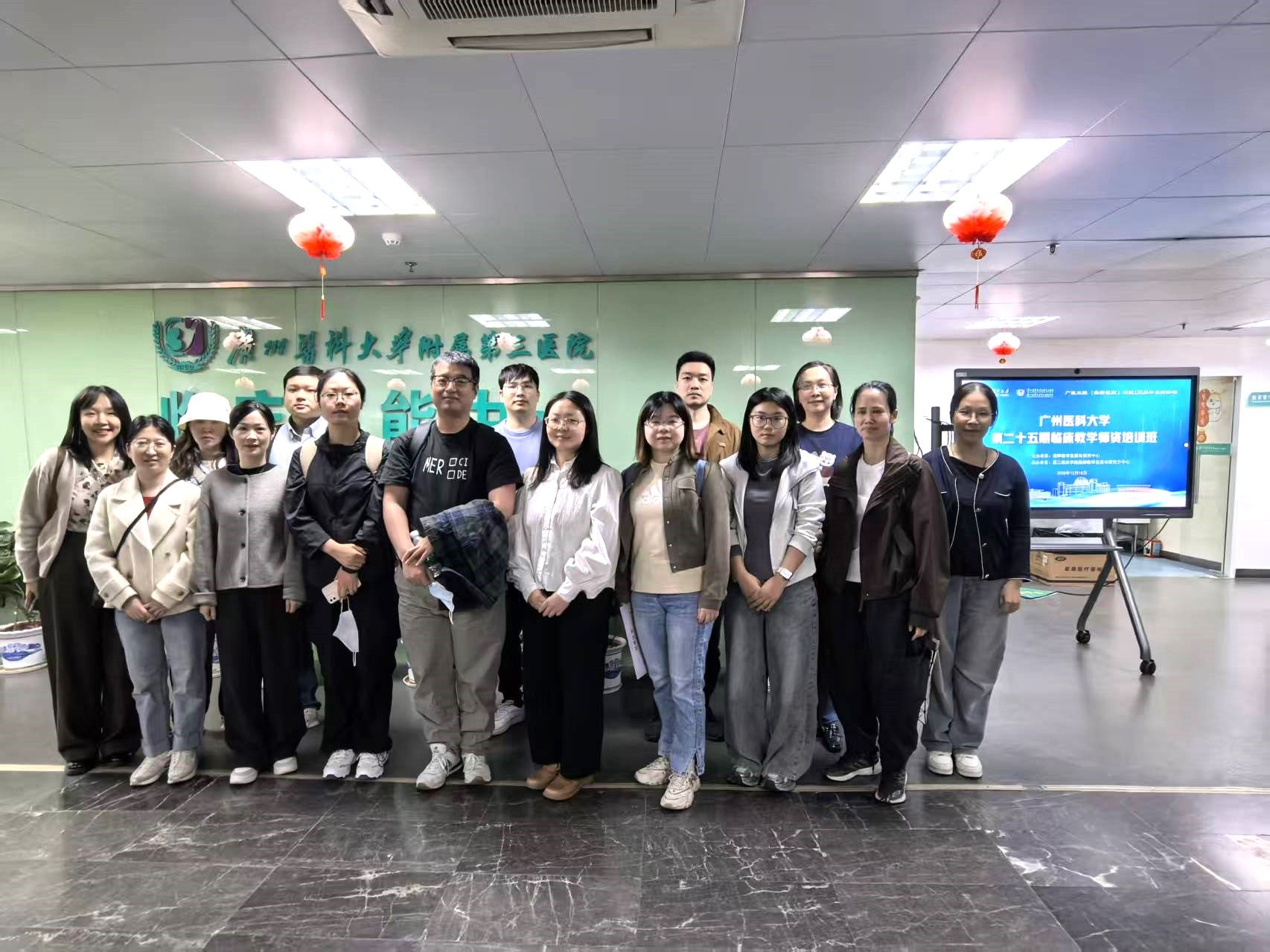 随后进入精彩纷呈的专题讲座环节。中山大学附属第一医院张昆松教授以《AI时代的未来医生》为题,深入探讨人工智能对医学教育生态的重塑、展现丰富的AI医疗实践场景。学校第三临床学院何泓副教授则立足一线教学管理需求,开展《妇产科学教研室建设经验分享》,为夯实教学组织基础提供了务实可行的指导。上海交通大学余建波教授通过云端连线,进行《面向“四个未来”:高校智慧课程建设与实践案例分享》分享,围绕AI推动医学教育改革、智慧课程建设,阐述了系统前沿的教学理念,展现了操作性强的实践范本。